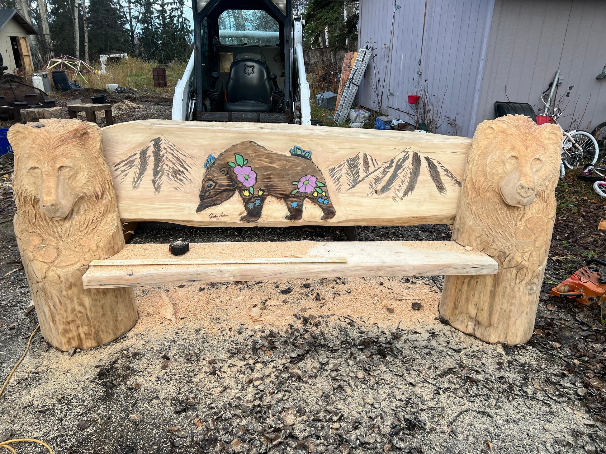 Bears, wolves, eagles and just about any wild live you could think of on each side of the bench. Make it personalized with your own photos or put your business logo on the backrest.